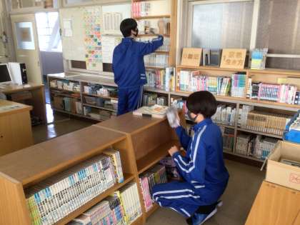 図書館は一旦本をすべて出して、棚をふいてくれました。