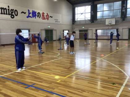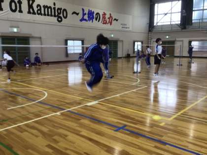 授業のはじめにウオーミングアップで取り組んでいた縄跳びのテストを行っていました。