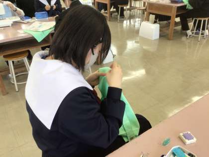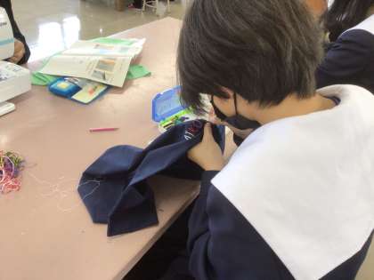 すでに完成した生徒は、刺繍をして飾り付けをしていました。