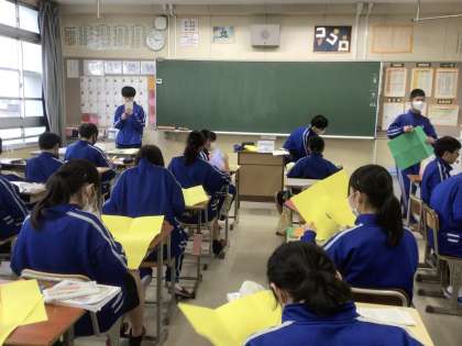 卒業生を送る会に向けて、今日から1・2年生が合同で準備を始めました。