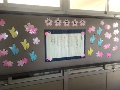 図書館司書の先生が卒業バージョンにしてくださっています。