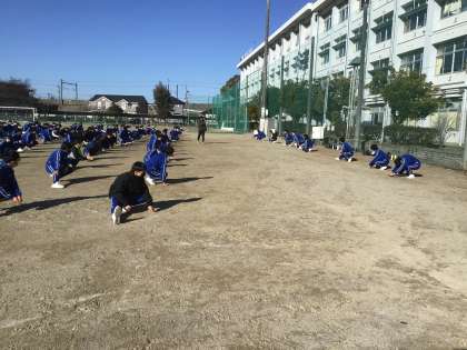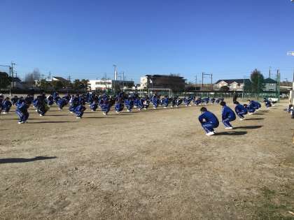 元気に声を出して準備運動です。