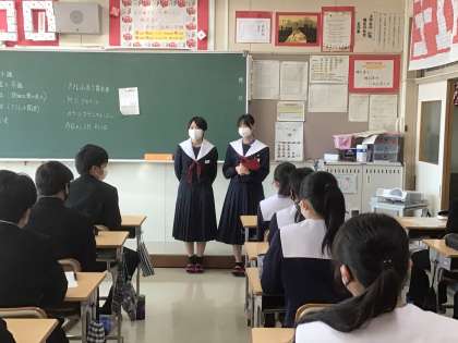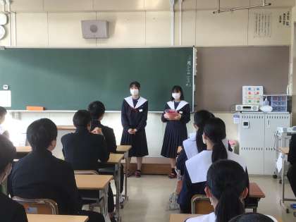 2年生の生徒が、今日の卒業生を送る会の招待状を渡すために3年生の教室に来ました。