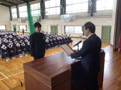 学校学年のために頑張った生徒を讃えました。