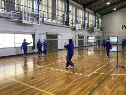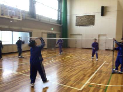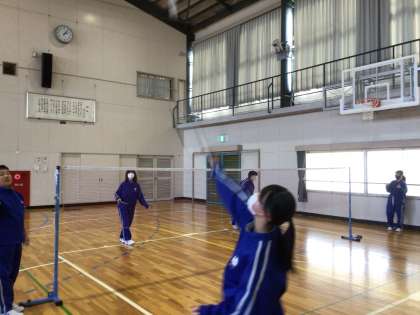 1年生は体育の授業でバドミントンをしていました。