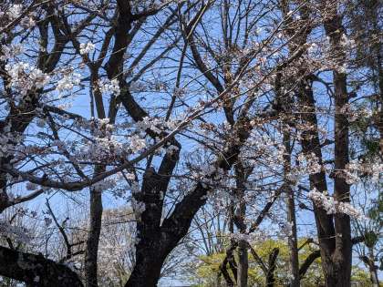 正門脇の桜は、開く花の数が増えてきました。