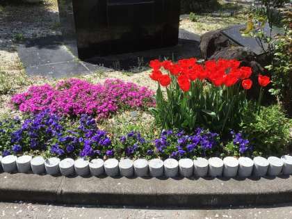チューリップをはじめ、いろいろな花が色鮮やかに咲いています。