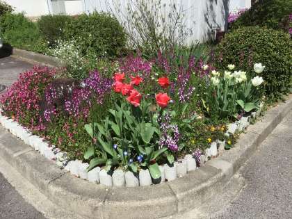 正門ロータリー周辺の花壇です。