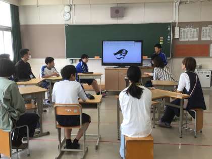 タブレットを使い、自分のことをクイズ形式で紹介しました。