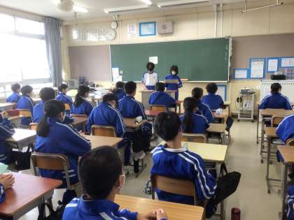 朝の会の様子です。 委員会の連絡などをしていました。