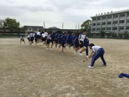 2組と3組、5組が学級活動の時間を使って、大縄跳びの練習をしていました。
