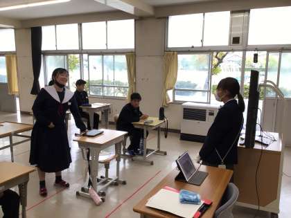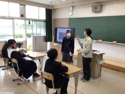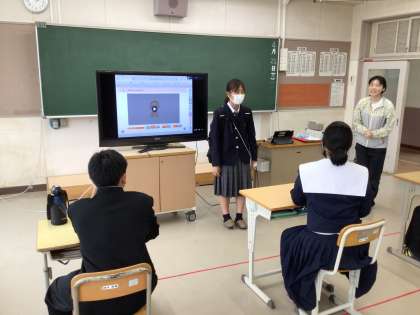 昨年卒業した先輩が中学校に訪問に来てくれました。