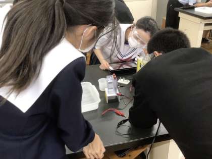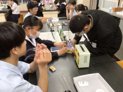 となりの理科室では、2年生が授業をしていました。