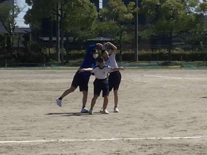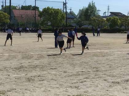 体育の授業で体育祭に向けた練習をしていました。