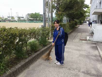 毎朝登校するとほうきを手にしてくれる生徒がいます。