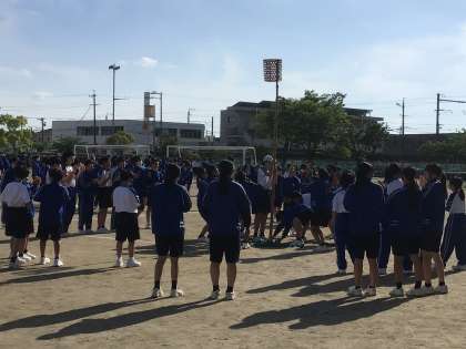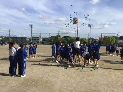 運動場で大縄や玉入れの練習をしました。