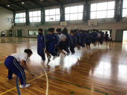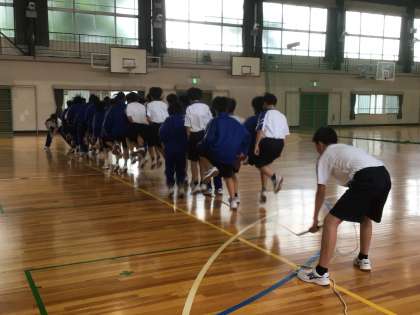 残念ながら外で体育祭の練習ができないので、体育館で練習しました。