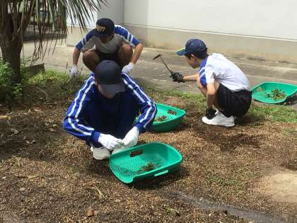 サツマイモを植えた畑の草取りをしました。