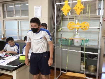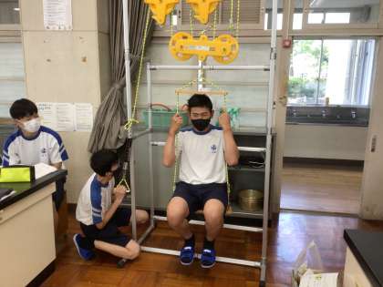理科の時間に、何やら大きな器具を使って実験を行いました。