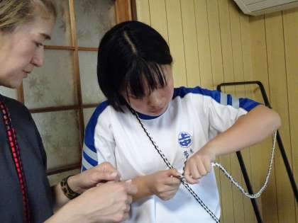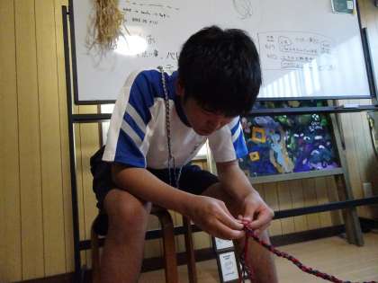 パラコードの組み紐とごちゃまぜアートに取り組みました。