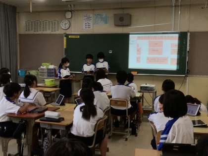 今日は、上郷地区のよいところ、そうでないところをグループで出し合い、まとめたことを発表していました。