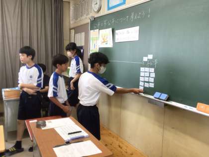 自分の考えを黒板に示し、自分の立ち位置をはっきりさせていました。