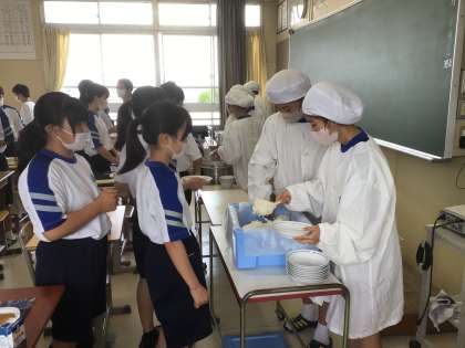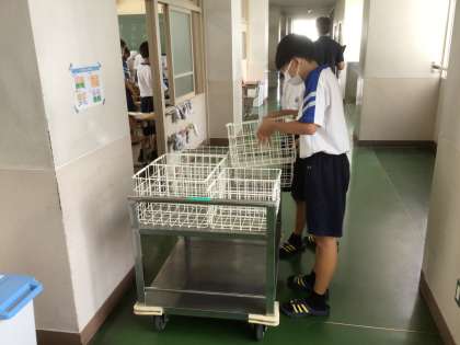 6/6 1年生 給食準備