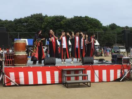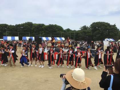 太鼓の演奏に合わせて踊り連の生徒が盛り上げました。