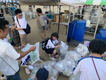 ボランティアの生徒は最後のゴミの分別まで頑張りました。