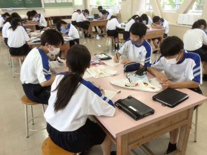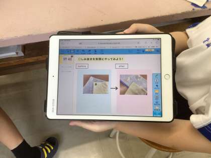家庭科の時間、染み抜きに挑戦しました。