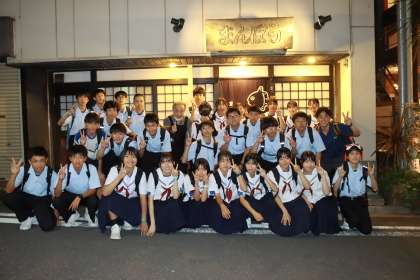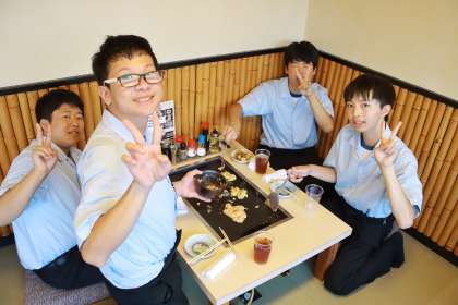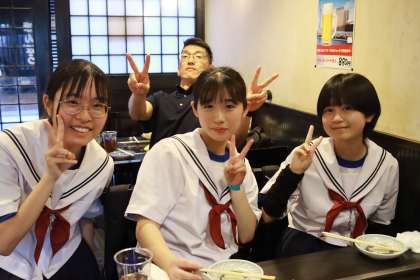 美味しい顔ってどんな顔? こんな顔! お店の前で記念写真!