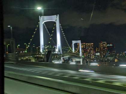 車窓からは、レインボーブリッジや東京タワーが見えました。