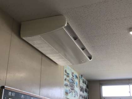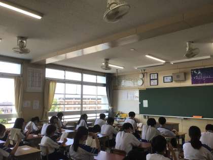 教室はエアコンや扇風機を稼働させています。