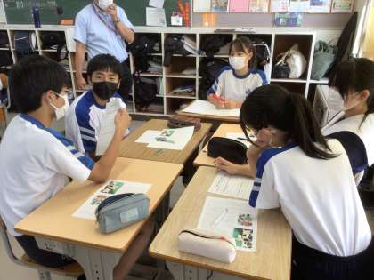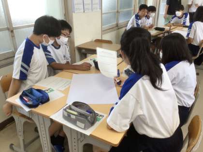 自分の考えを班で出し合いながら共有し、まとめていました。