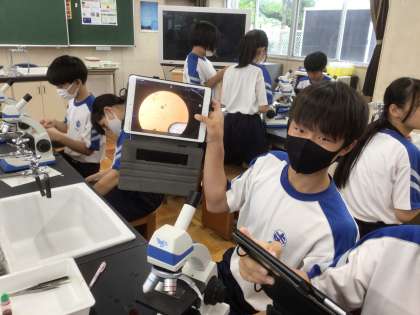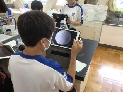 その後、今度は自分の頬の細胞の観察に挑戦です。
