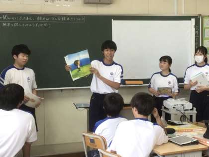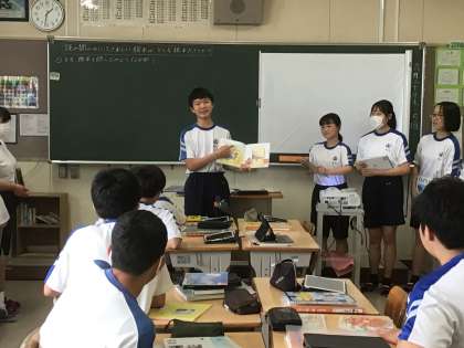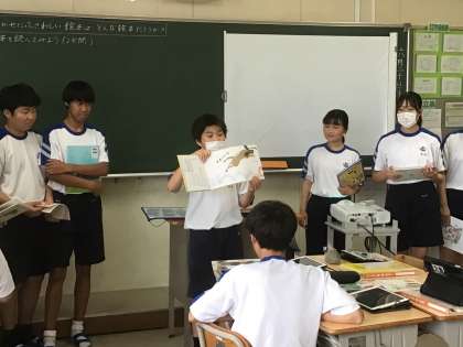 今日は、自分が選んだ本のこういうところが読み聞かせに向いているんじゃないか、ということを発表しました。
