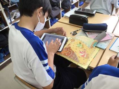 その後、3つの視点で分析し、学習用タブレットにまとめていました。
