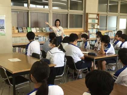 今日は、5組が図書館司書の先生にブックトークをしていただきました。