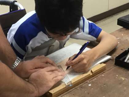 彫刻刀でていねいに彫り進めていました。