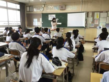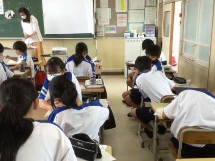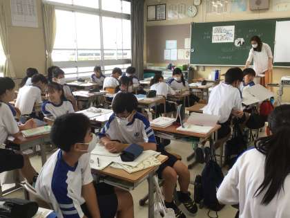 前に学習したことを確認し、近くの生徒同士で相談しました。