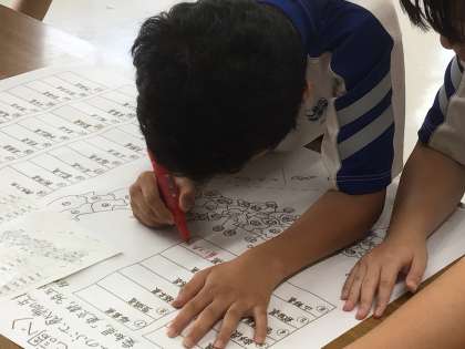その後、都道府県の特産物について調べたものを、日本地図に書いていきました。