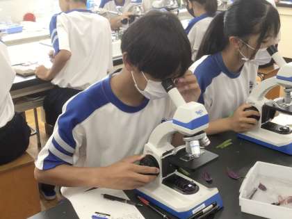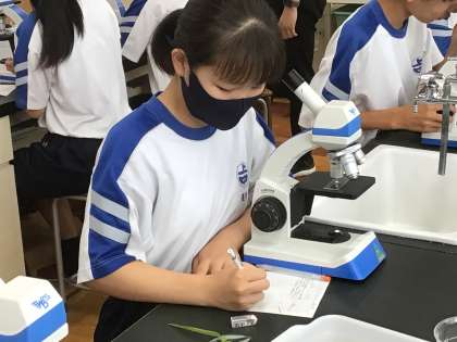 顕微鏡で葉にある気孔を観察していました。
