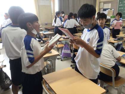 会話のやり取りを、ペアを変えながら練習していました。