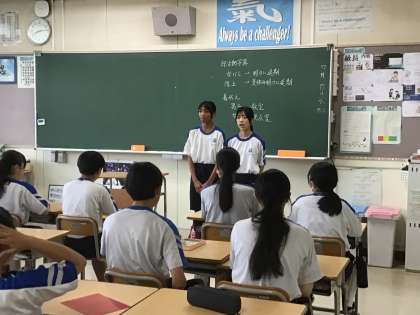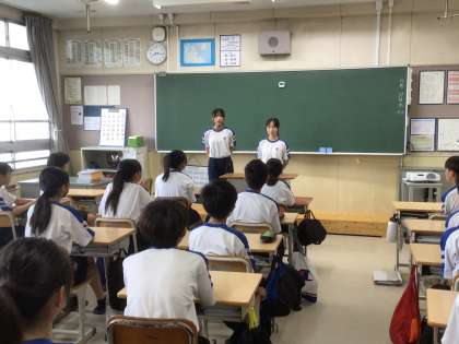 今日も、上中タイムに後期生徒会役員選挙の立候補者が教室訪問をしていました。