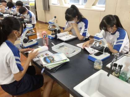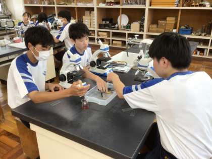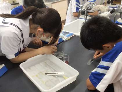 顕微鏡の操作やプレパラートの作成が正確にできるかをチェックしていました。