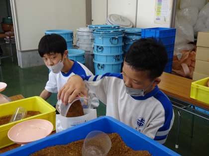 今日は、ジョイナスえかくさんがやっている、EМボカシの袋詰め作業をさせていただきました。