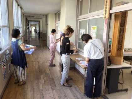 かみごうベースの方たちが、ごちゃまぜアート展の作品を展示しに来られました。