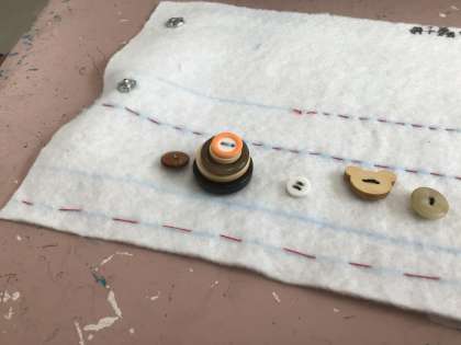 いろいろな種類のボタンを縫い付けていました。