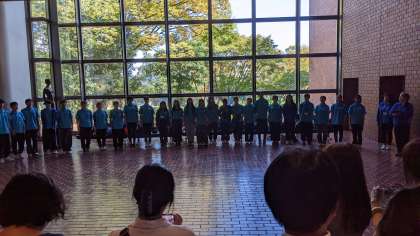 出迎えてくださった先生や保護者の方々に英語の歌を披露してくれました。