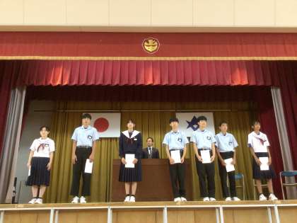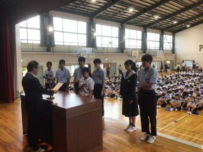 上郷中学校をより良い学校にしていこうと会長から全校生徒に向けて発信されました。